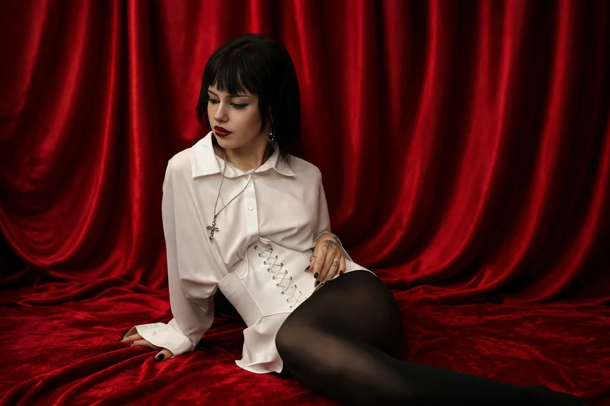⸸ I sit in white, like a blank page, but my nails and my thoughts are far too dark to be innocent 𐕣